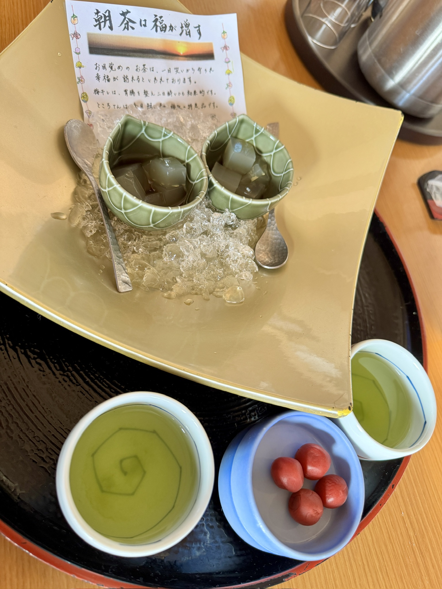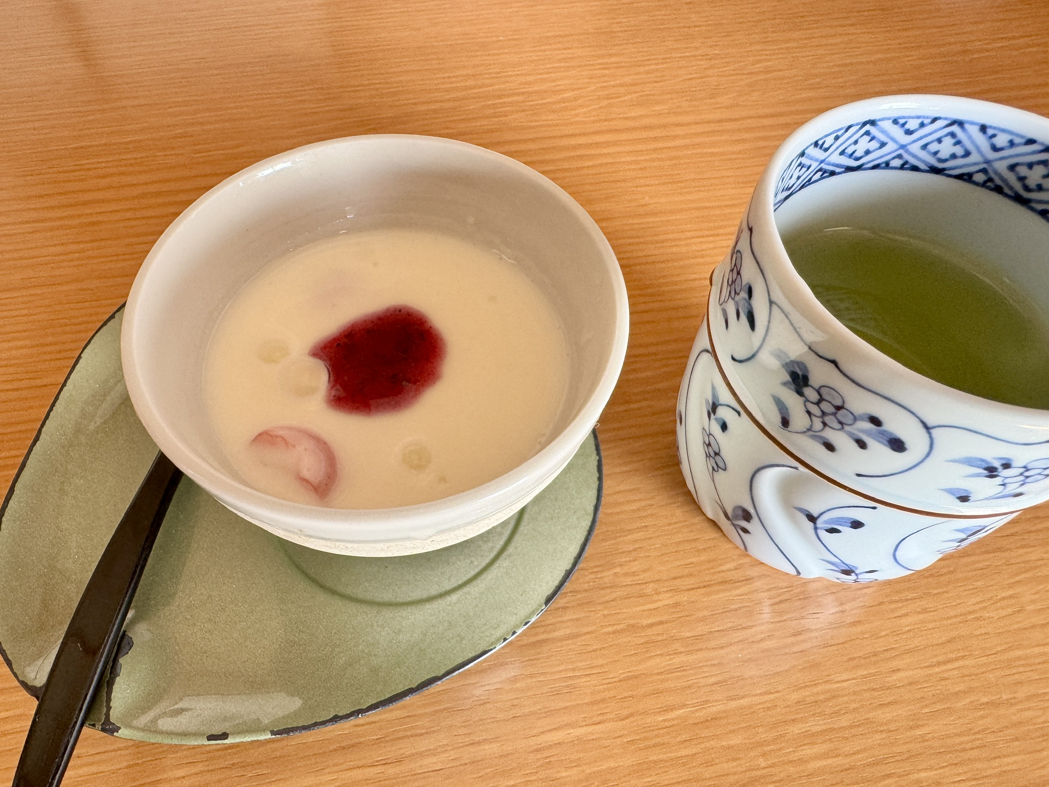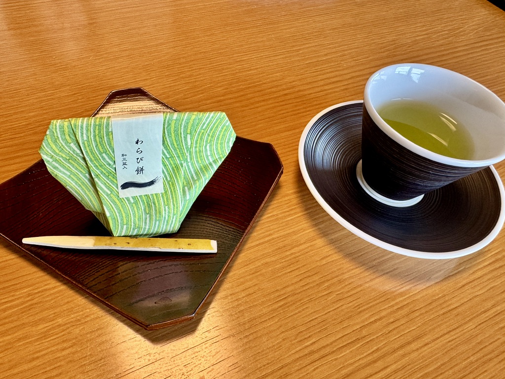 部屋に案内され、少ししたらわらび餅と緑茶を持ってきてくれた。