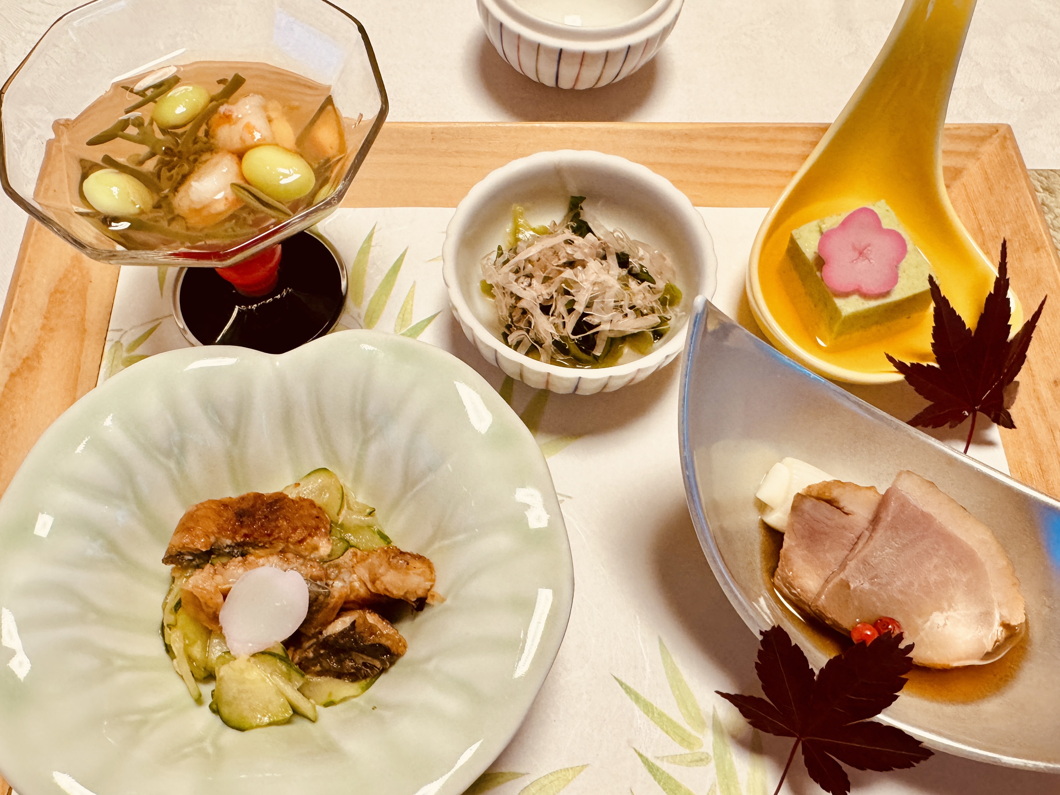 この宿の売りのひとつは「食事」。夕食は部屋食で次々に料理を運んできてくれる。