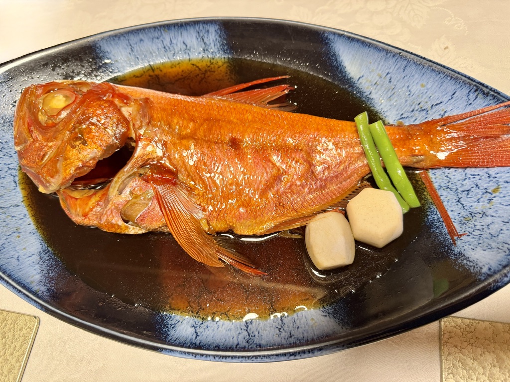 キンメダイの煮付けはキレイに取り分けしてくれた。濃厚でとろりした煮汁でコクがあり美味しかった。