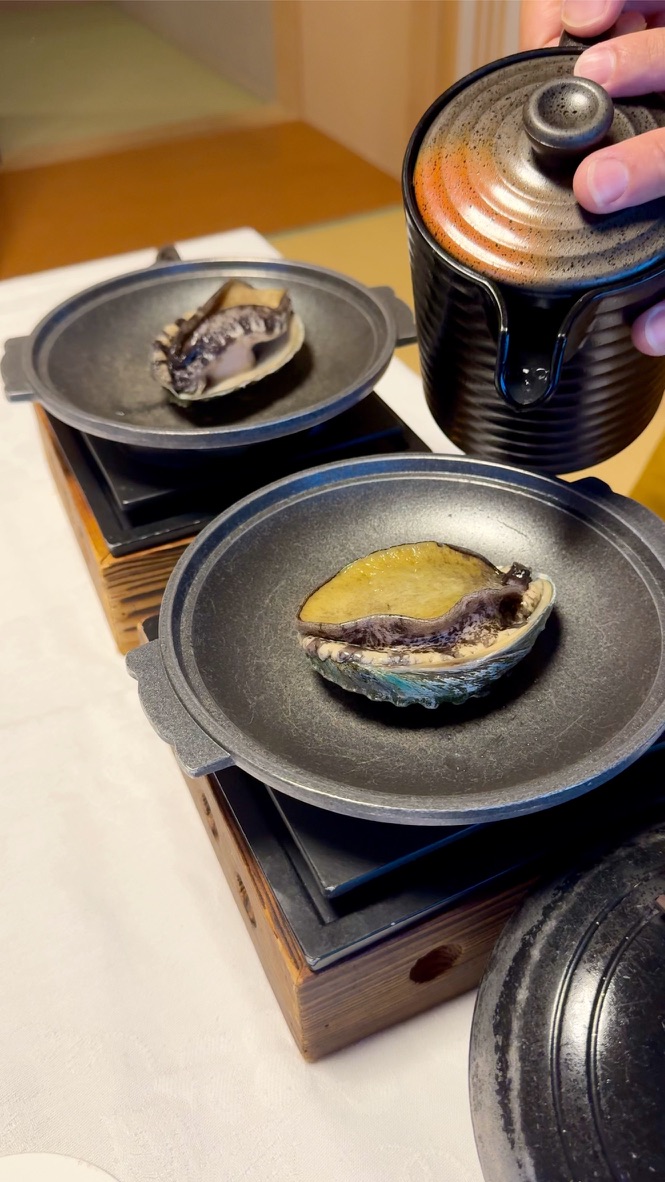 アワビの酒蒸し。生きているので酒をかけて加熱するとウネウネ動き、少し切ない気持ちに(嘘)